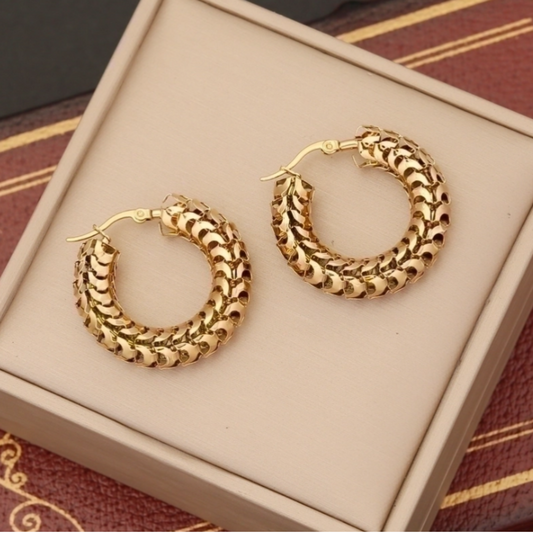 Ατσάλινοι Χρυσοί Κρίκοι με Πλεκτό Σχέδιο Επιχρυσωμένοι 18Κ