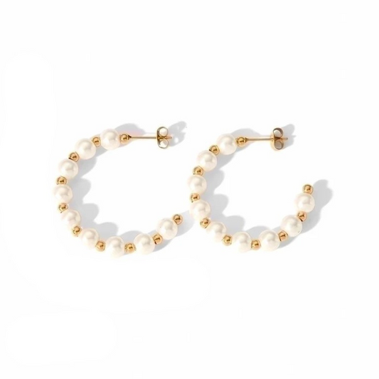 Ατσάλινα Σκουλαρίκια C-Shape με Πέρλες με Επιχρύσωση 18Κ