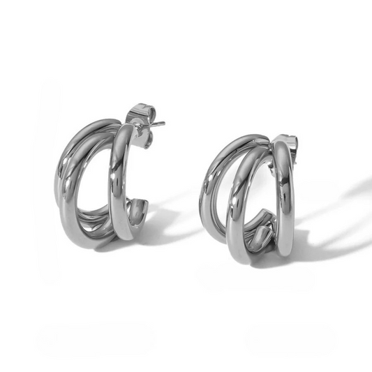 Ατσάλινα Σκουλαρίκια Καρφωτά Τρια Ημικύκλια με Επιχρύσωση/Επιπλατίνωση 18Κ