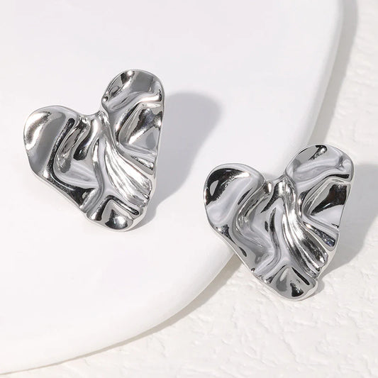 Ατσάλινα Σκουλαρίκια σε Σχήμα Καρδιά Ακανόνιστα Τσαλακωμένα