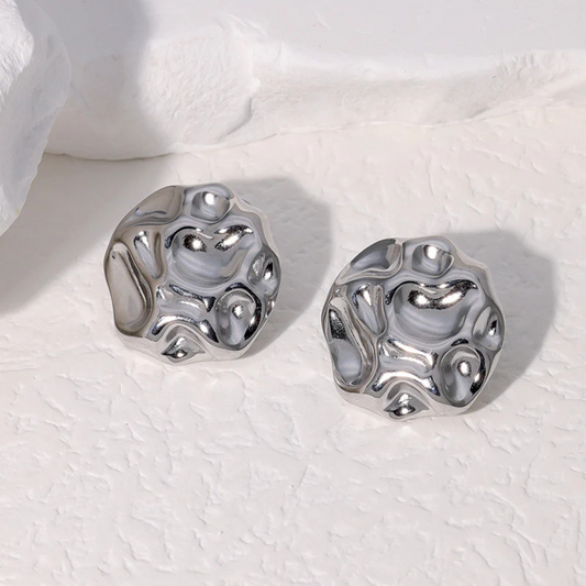 Ατσάλινα Σκουλαρίκια Τσαλακωμένο Σχήμα Επιχρυσωμένα 18Κ/Επιπλατινωμένα
