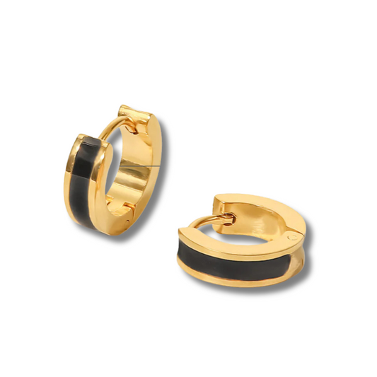 Ατσάλινοι Κρεμαστοί Κρίκοι Οβάλ με Μαύρο Σμάλτο με Επιχρύσωση 18K