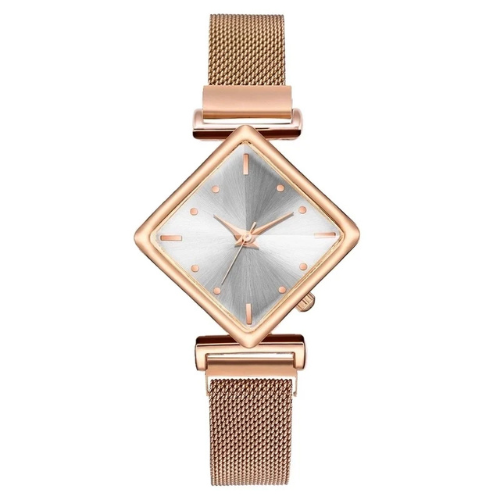 Γυναικείο Ρολόι με Τετράγωνο Καντράν & Πέτρες Ζιργκόν