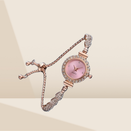 Γυναικείο Ρολόι με Στρογγυλό Ροζ-Χρυσό Καντράν & Πέτρες Ζιργκόν